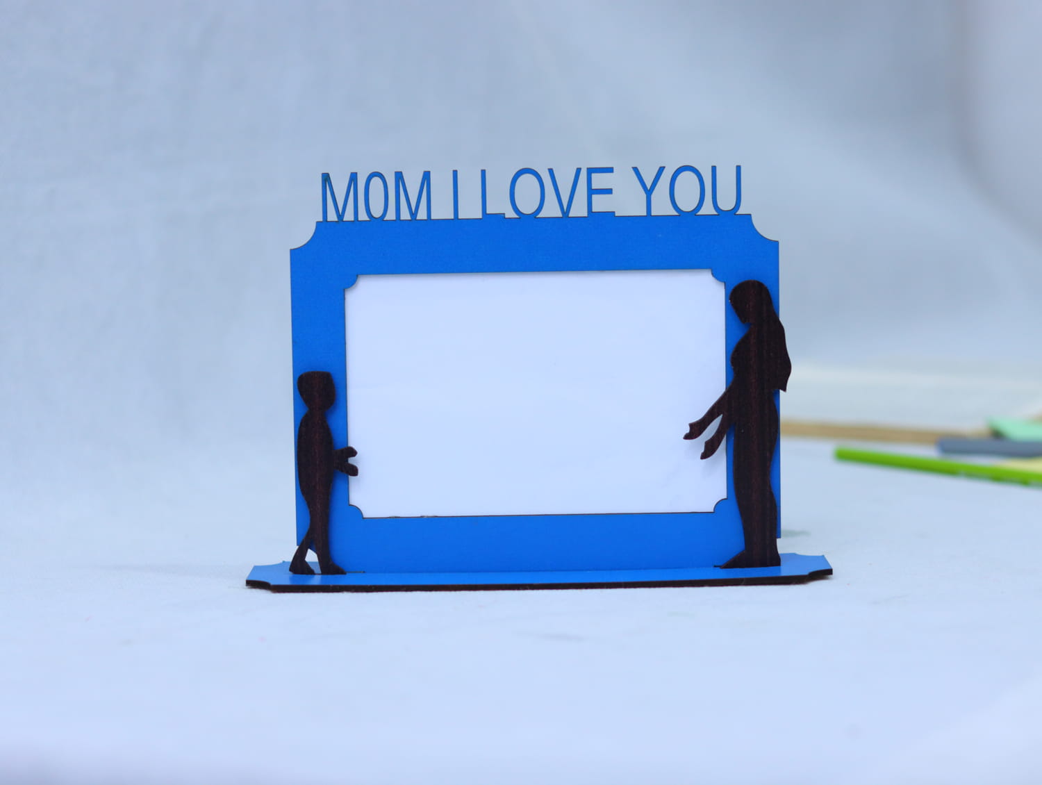 Celebrate the warmth and love of motherhood with the Mom Picture Frame – 11CT0015. Thoughtfully designed in vibrant blue with elegant wooden silhouettes of a child and mother, this photo frame is a heartfelt tribute to the unbreakable bond between mom and child. The words "MOM I LOVE YOU" prominently crown the frame, making it an ideal décor piece or gift for Mother's Day, birthdays, or everyday appreciation.